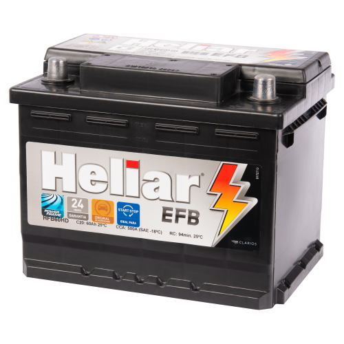 Bateria HELIAR – EFB 60Ah – EFB60HD – Ideal Para Carros c/ Sistema Start-Stop ( Stop-Go ) – 12V